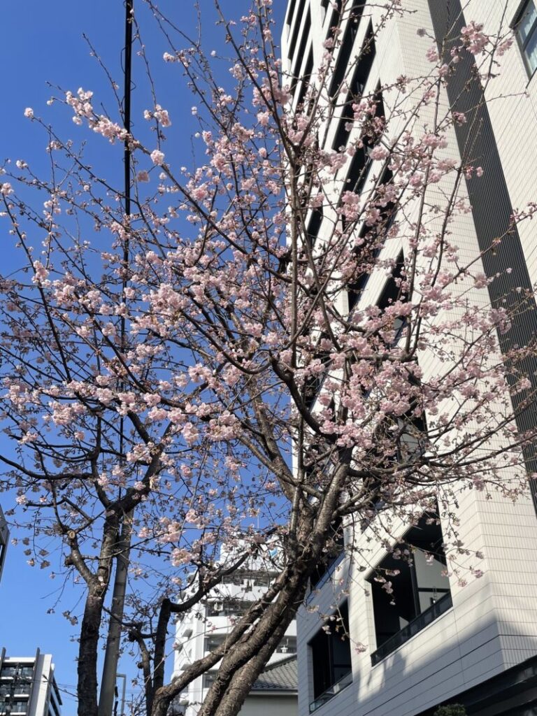 名古屋市東区の早咲きで有名な、オオカンザクラの並木道で桜が咲いてました✨